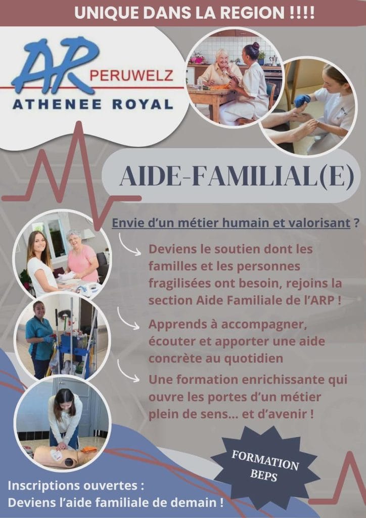La formation en aide familiale proposée à l’Athénée de Péruwelz, unique dans la région, est accessible de la 4e à la 6e année. Il s’agit d’un métier d’avenir, offrant de réelles perspectives d’emploi et une insertion professionnelle facilitée.
