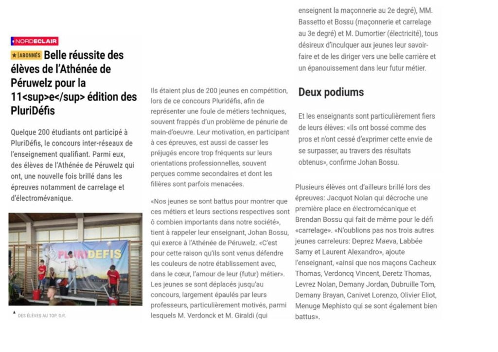 Belle réussite pour la 11e édition des Pluri-défis pour nos élèves de l’Athénée de Péruwelz.